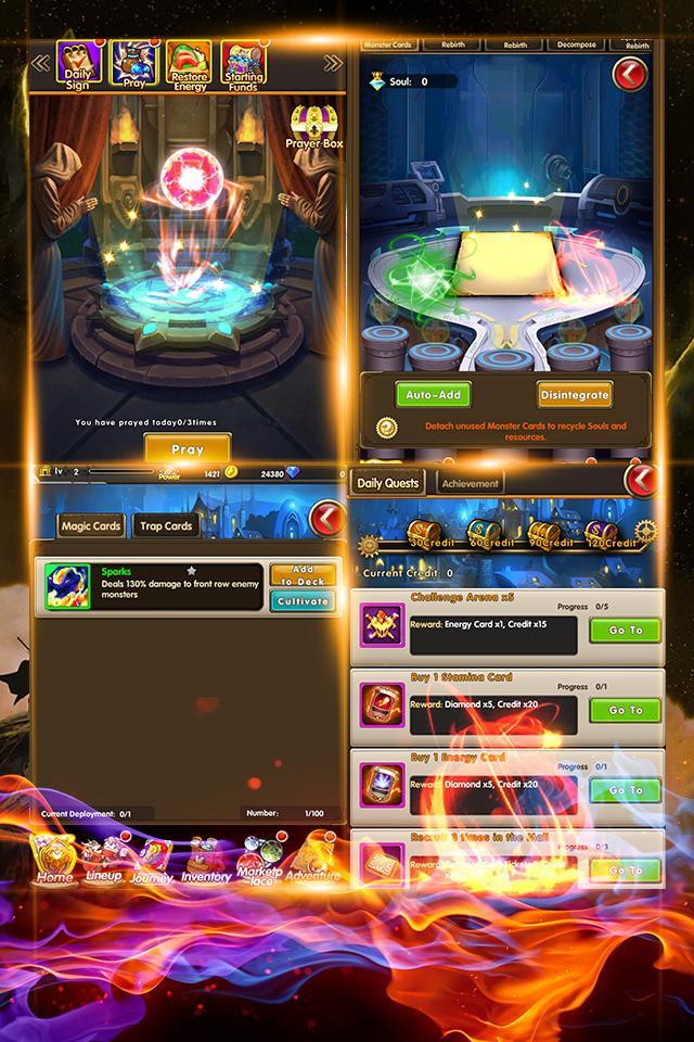 Разнообразные способы разыгрывания специальных карт предложит вам возможность стать настоящим дуэлистом. Коллекция карт, стратегические поединки и конкурс PVP мгновенно приведут вас в волшебный мир поединков. Многие божественные персонажи ждут вас. Разнообразные режимы PVP Duel, разумная конфигурация магических карт и другие карты могут даже спасти вас от отчаяния!